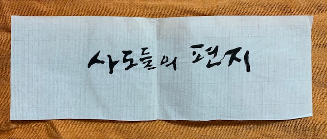 제가 ‘회장’을 지냈다고 ‘필법들’을 다 배우고 익혔다는 뜻은 아닙니다. 오히려 저는 필법 연습은 안 하고 밖에서 다른 놀이에 더 바빴습니다. 필법으로 칭찬 받기는 선생님의 애제자이자 제 동기인 연수리교회 장종찬 요한 사제가 제일이었습니다. 아마 그 때 연습했던 선생님의 필법지를 제일 많이 갖고 있는 제자도 그와 저 일 겁니다. 제 기억이 맞는다면 선생님께 필법들을 끝까지 다 배우고 익혀서 선생님의 ‘어깨동무체’(연대체)를 가장 가깝게 흉내 낼 수 있는 유일한 제자는 장신부님입니다. 우리 사목실에도 장신부님이 쓰신 ‘나무야 나무야’가 있지요.