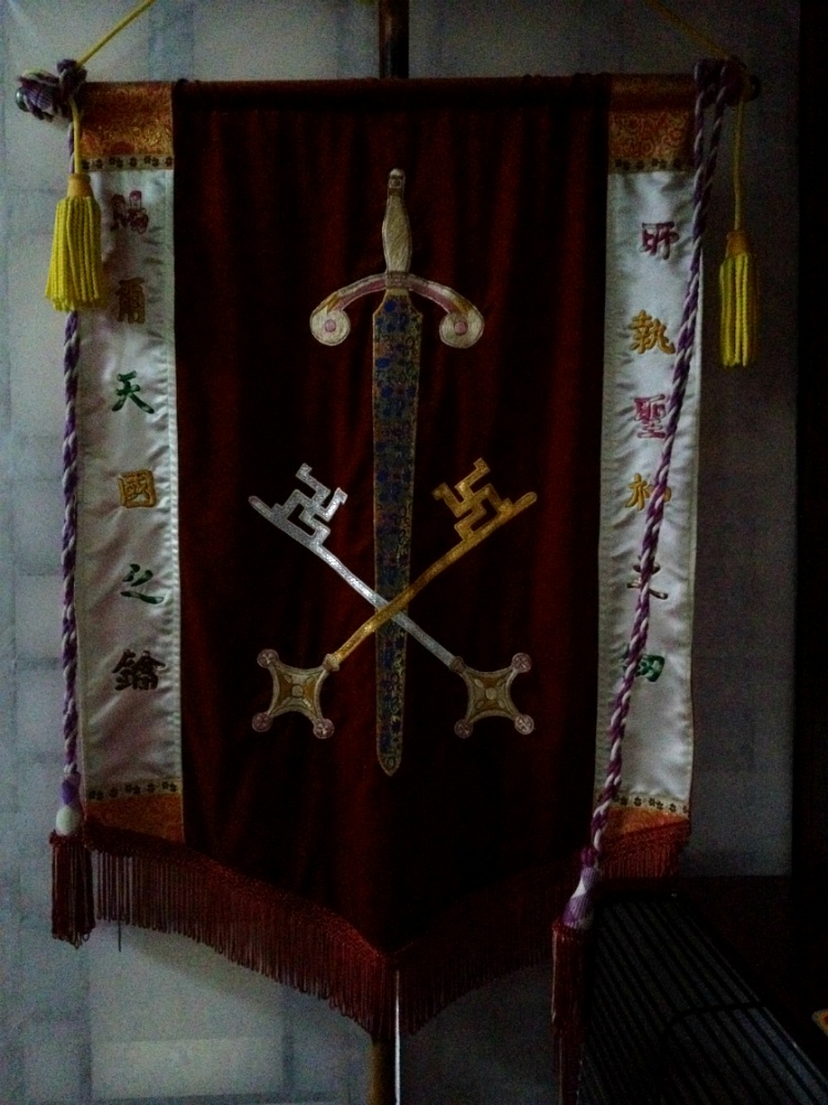 이 휘장은 강화읍성당에서 사용하는 휘장이라는데, 의미와 용도는 잘 모르겠습니다. 이건 신부님에게 설명을 들어야 할 것같습니다. 다만, 강화읍 성당의 성인인 바울로를 상징하는 말씀의 검과 베드로를 상징하는 천국 열쇠를 이용한 휘장이죠. 재미있는 건, 열쇠에 새겨진 저 만(卍)자입니다. 성공회가 한국에 전파될 때, 어떻게 하면 토착화할 수 있을까, 어떻게 하면 한국의 문화에 복음을 심을 수 있을까를 고민한 흔적이죠. 초창기 성공회 선교사들은 불교나 유학자들과 교류가 많았다고 전해들었습니다. 그들 나름대로, 한국의 문화 속에 복음을 심으려고 했던 것이겠죠? 이런 노력은 여기서 그치지 않습니다. 다음 사진을 보시죠.