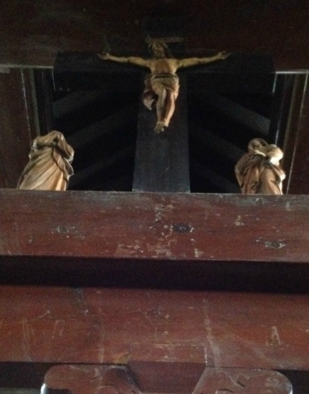 지성소와 신자석 사이에는 영광문이 놓여있습니다. 영광문 위에는 예수의 십자고상과 요셉, 성모 마리아 상이 놓여있지요. 세례단, 영광문과 지성소… 이 배치는 다 의미가 있더라구요. 좀 설명이 필요한데, (미사라고도 하는) 감사성찬례는 늘 영성체를 영하는(개신교에서는 성찬식이라고…) 때가 되면, 신부님이 저 문을 열고 세례받은 사람을 초대합니다. 그리고, 영광문이 열린 자리에서 성찬이 이루어집니다.