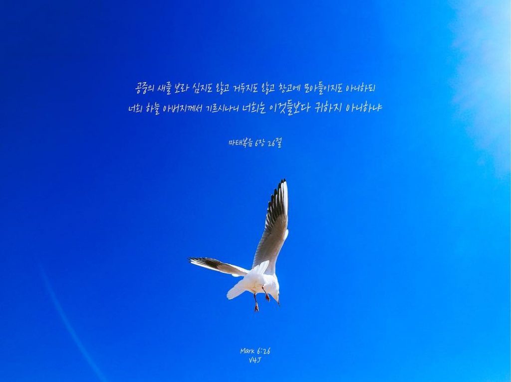 [drop_cap color=”#aaaaaa” background=”#ffffff”]6 [/drop_cap]19 ¶ “재물을 땅에 쌓아두지 마라. 땅에서는 좀먹거나 녹이 슬어 못쓰게 되며 도둑이 뚫고 들어와 훔쳐간다. 20 그러므로 재물을 하늘에 쌓아두어라. 거기서는 좀먹거나 녹슬어 못쓰게 되는 일도 없고 도둑이 뚫고 들어와 훔쳐가지도 못한다. 21 너희의 재물이 있는 곳에 너희의 마음도 있다.” …
