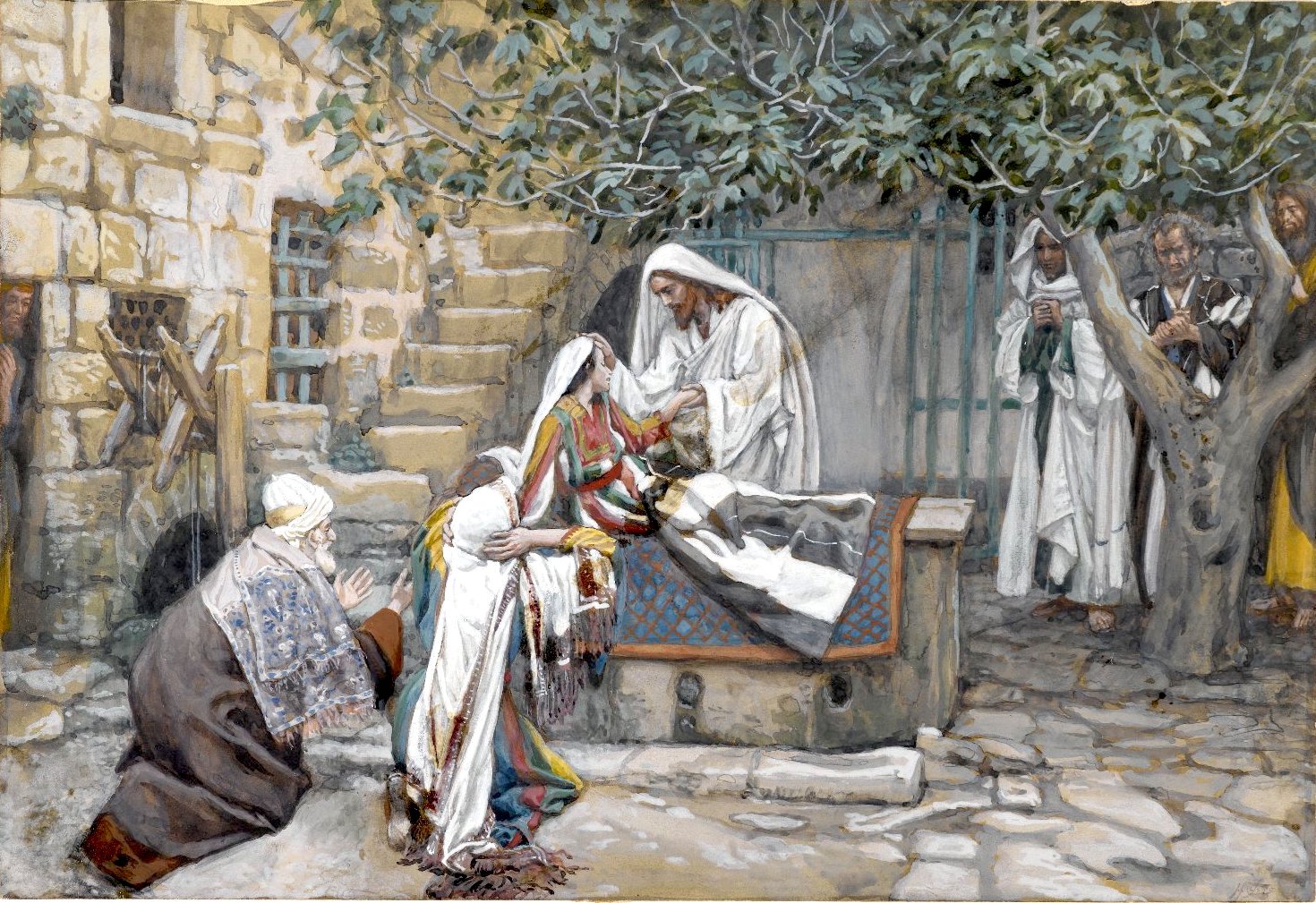 35 ¶ 예수의 말씀이 채 끝나기도 전에 회당장의 집에서 사람들이 와서 회당장에게 “따님이 죽었습니다. 그러니 저 선생님께 더 폐를 끼쳐드릴 필요가 있겠습니까?” 하고 말하였다. 36 예수께서는 이 말을 들은 체도 아니하시고 회당장에게 “걱정하지 말고 믿기만 하여라.” 하고 말씀하셨다. 37 그리고 베드로와 야고보와 야고보의 동생 요한 외에는 아무도 따라오지 못하게 하시고 38 회당장의 집으로 가셨다. 예수께서는 거기서 사람들이 울며불며 떠드는 것을 보시고 39 집 안으로 들어가셔서 그들에게 “왜 떠들며 울고 있느냐? 그 아이는 죽은 것이 아니라 잠을 자고 있다.” 하고 말씀하셨다. 40 그들은 코웃음만 쳤다. 예수께서는 그들을 다 내보내신 다음에 아이의 부모와 세 제자만 데리고 아이가 누워 있는 방에 들어가셨다. 41 그리고 아이의 손을 잡고 “탈리다 쿰.” 하고 말씀하셨다. 이 말은 ‘소녀야, 어서 일어나거라.’라는 뜻이다. 42 그러자 소녀는 곧 일어나서 걸어다녔다. 소녀의 나이는 열두 살이었다. 이 광경을 본 사람들은 놀라 마지않았다. 43 예수께서는 그들에게 이 일을 아무에게도 알리지 말라고 엄하게 이르시고 소녀에게 먹을 것을 주라고 하셨다.